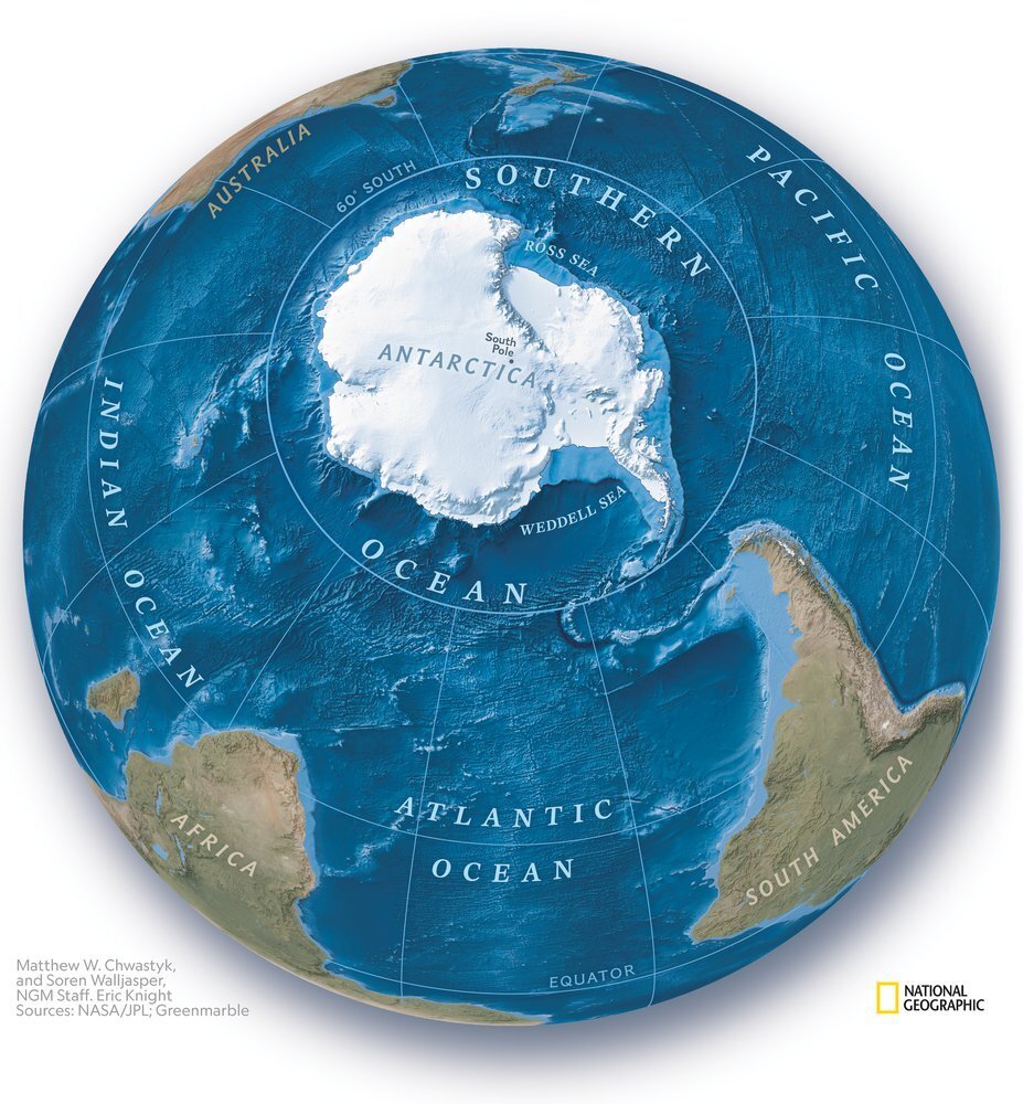 В научных спорах, которые велись на протяжении десятилетий, поставлена точка. Теперь Южный океан будут отмечать на картах и инфографиках от National Geographic.