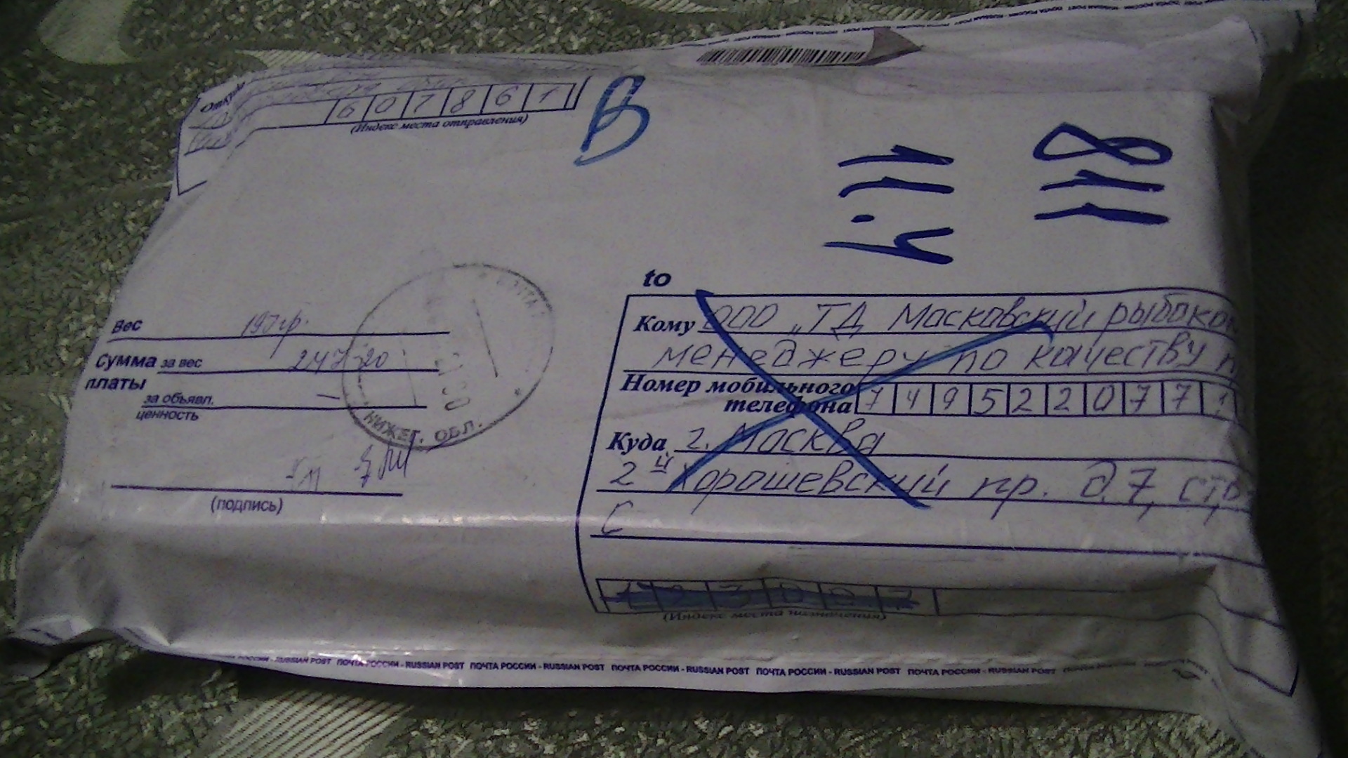 Мы послали бандероль из 2-х банок икры (весом 197 грамм) на имя менеджера по качеству. Но месяца полтора наша посылка вернулась обратно. Никто за ней не пришел.