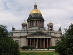 В 1710 году в Санкт-Петербурге появилась церковь во имя преподобного Исаакия Далматского. Позже на другом месте была возведена каменная Исаакиевская церковь. В 1768-1802 годах шло строительство третьего Исаакиевского собора по проекту архитекторов Антонио Ринальди и Винченцо Бренна, которое, однако, так и не было закончено. Наконец в 1818-1858 годах был возведен существующий ныне Исаакиевский собор. Автором проекта стал архитектор Огюст Рикар де Монферран.