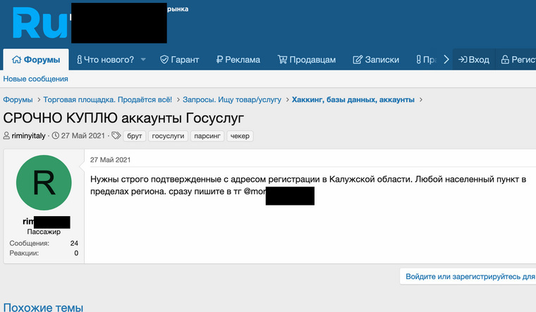 На черном рынке в регионах ищут продавцов аккаунтов Госуслуг,