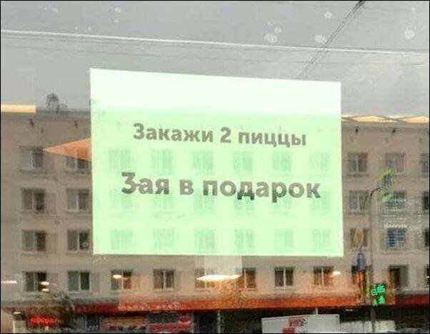 Зайчики нужны? А вот закажи в этом кафе 2 пиццы, и 3-аю дадут бесплатно!