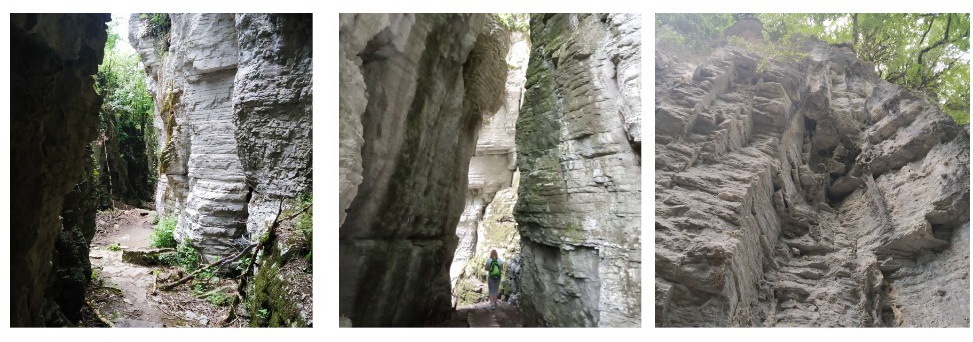 Сухой каньон реки Псахо впечатлил не меньше, особенно путь к нему. Пришлось карабкаться примерно больше 150 метров вверх по обрыву с крутым уклоном. Сам каньон не очень протяженный, но не менее живописный. Говорят, Сухой каньон появился более 150 млн. лет назад, когда жизнь на планете только зарождалась. Образовался он в результате бурной тектонической активности, на дне всемирного океана Тетис. Позже, когда уровень воды спал, а разлом оказался на суше, по нему протекала речка, по невыясненной причине в дальнейшем поменявшая русло.