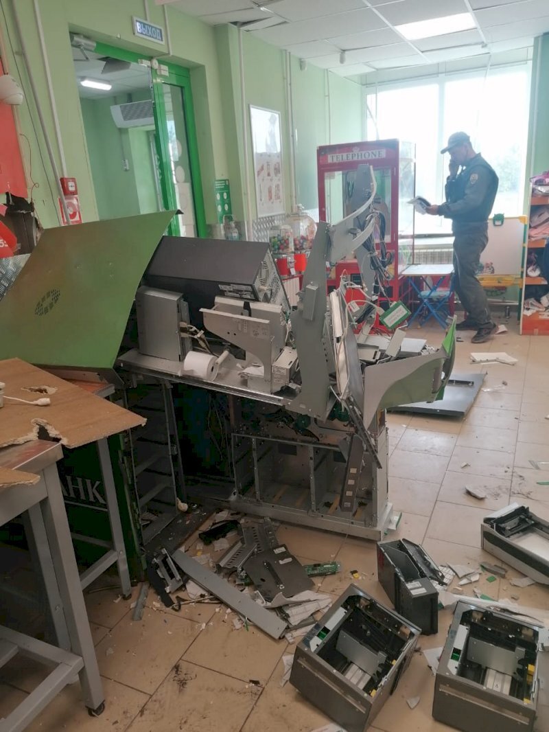 Спецы- грабители...видимо знакомы и с устройством банкоматом и с взрывным делом... Даже сумку чуть подальше отодвинули, ровно на столько, чтобы не пострадала от взрыва. Часовой взватель видимо ещё был, или то что заискрило в нужное время.