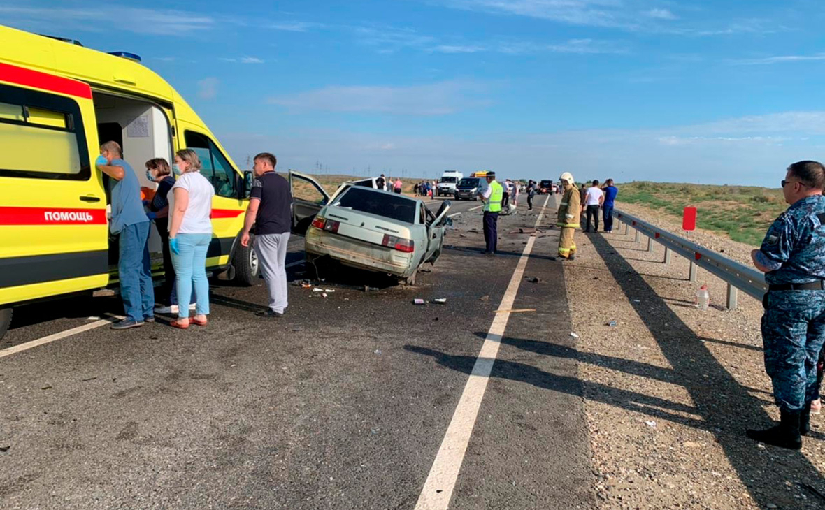 В Астраханской области в ДТП с микроавтобусом пострадали 10 человек