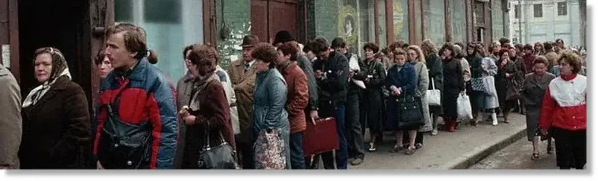 💬 ..."тотальный дефицит создавался во всем. Начиная с продуктов питания, заканчивая товарами легко промышленности. Заводы и фабрики еще работали, продукцию отпускали исправно, но до прилавков она не доходила"...