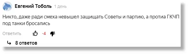 Люди действительно под танки бросались, искренне веря, что защищают новое, светлое будущее страны, даже не подозревая, что им светит, в этом будущем.