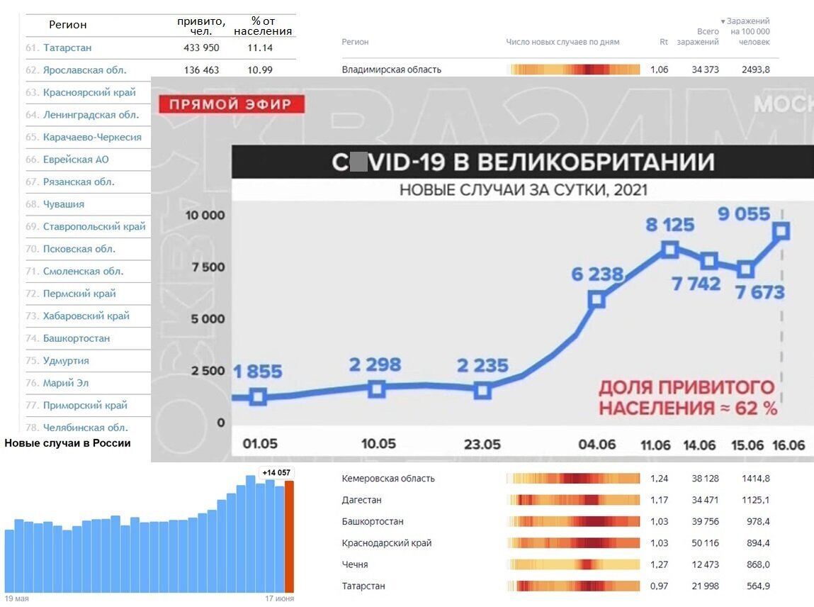 При населении 67,886 миллионов человек Великобритания, привив 62% населения, получила за полтора месяца рост заболеваемости в 4,88 раза – с 1855 до 9055 человек в сутки. Это пример для подражания?