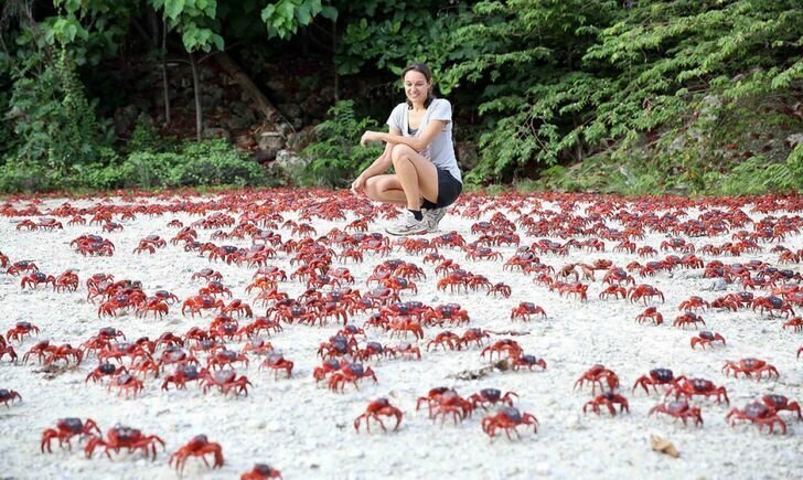 Ежегодно около 43 миллионов наземных крабов массово перемещаются в океан, чтобы отложить яйца. Местные власти закрывают на неделю большую часть дорог, чтобы не мешать миграции.