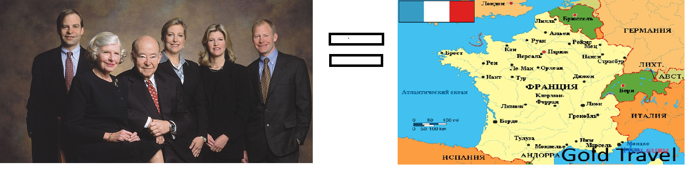 На картинке слева нам улыбаются представители семейства Ротшильдов, справа контуры Франции на карте, в центре знак равенства, смысл коллажа итого: Ротшильды равны Франции.