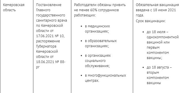 Список регионов, в которых ввели обязательную вакцинацию для части населения