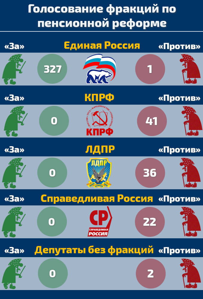 Может быть за тех, кто был против увеличения пенсионного возраста? Напомню результаты партийного голосования по этому вопросу: