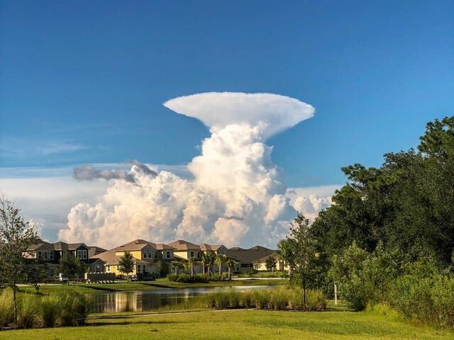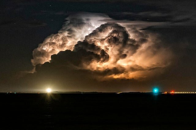 О том, что надвигается гроза, свидетельствуют высокие и массивные многоуровневые тучи, которые можно заметить издалека за много-много километров. На фото выше один из таких примеров, но облака приняли совсем необычную форму, что успел запечатлеть фотограф.