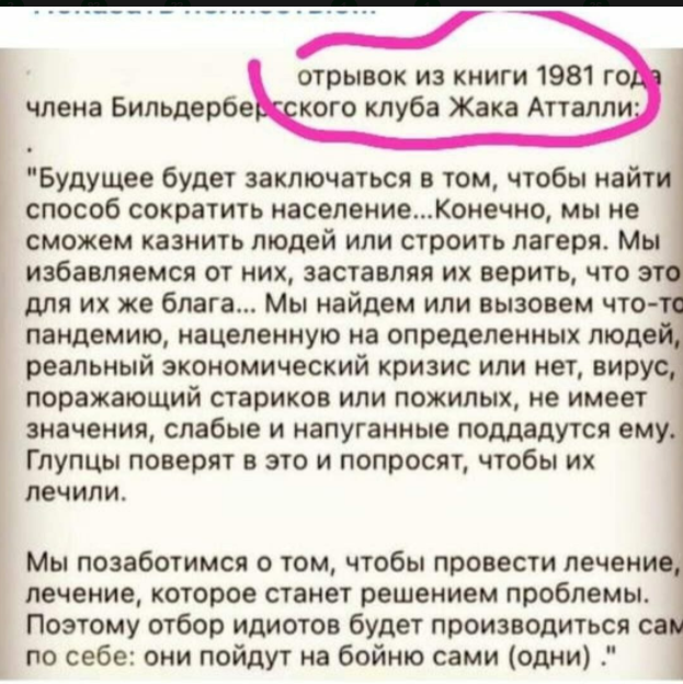 Ближе второе ваше предположение для лиц сторонников сокращения населения.и ковид и принудительная вакцинация.очень смахивает на цель одной нации .достижения цифры 666....PS,Последние ограничениядля невакцинированныхсв Москве.Башкирии и вчерашнее заявления Пескова что непрвакциинированные будут подвергнуты дискриминации.А самчио то прививаться от короны не спешит