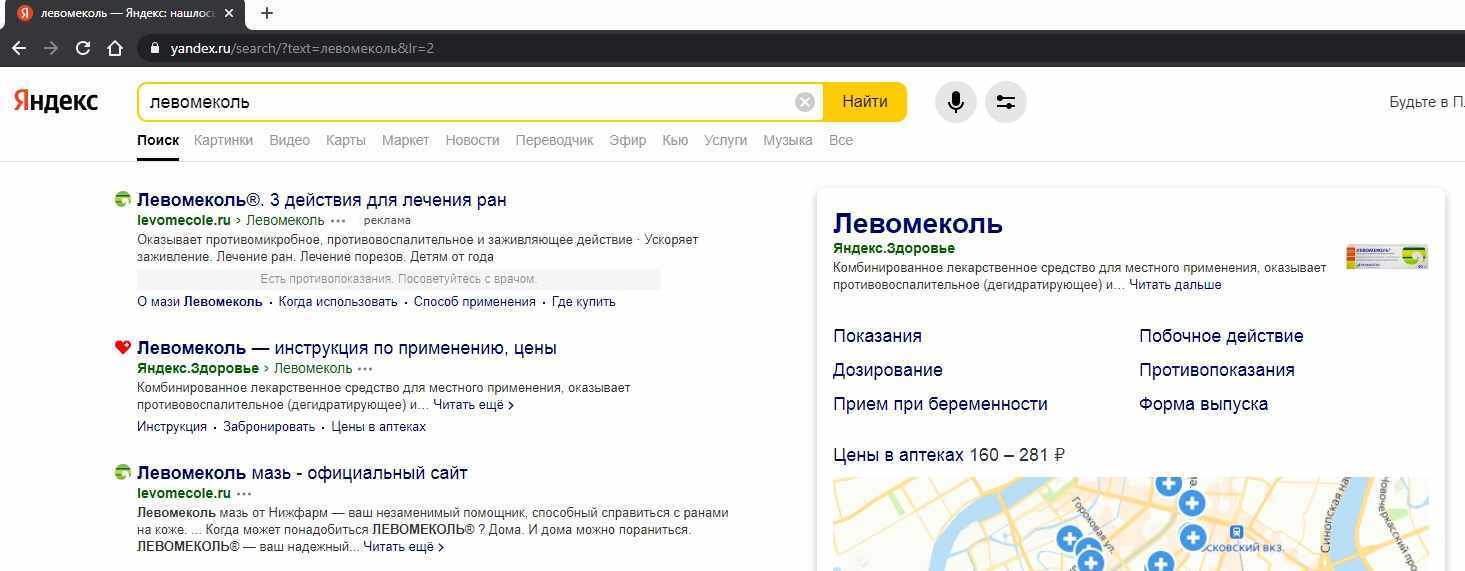 Сервис о здоровье со статьями о лекарствах и болезнях, онлайн-консультациями врачей и интернет-аптекой сегодня находится на первой строчке выдачи «Яндекса» по большинству тематических вопросов, отодвигая СМИ о здоровье, независимые интернет-проекты и сайты клиник. Доходит до абсурда. По брендовому запросу лекарственного препарата первое место в выдаче занимает «Яндекс. Здоровье», а только потом идет сайт производителя (см. скриншоты).