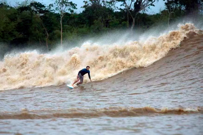 Это явление называют Поророка — «ревущая вода» по-португальски. Река в это время течет вспять, поднимаясь гигантским буруном. Чем уже становится река вверх по течению, тем мощнее сжатый берегами поток соленой воды.