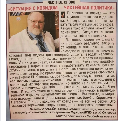 Люди, типа этого профессора Воробьева, это, вне всякого сомнения, позор отечественной медицины! Есть еще "академик" Гундаров, некий профессор Редько.
