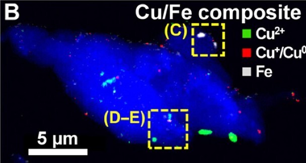 Карты расположения атомов меди позволили определить, что в бляшках обоих пациентов содержалось множество отдельных отложений с размером порядка сотен нанометров. При этом в них обнаружили как Cu0 (элементарную форму в нулевой степени окисления), так и окисленные Сu+ и Cu2+. Кроме того, исследователи построили карты для атомов железа и выяснили, что они тоже образуют скопления в бляшках. Они также были в разных степенях окисления. Для атомов железа также измерили магнитные моменты и получили магнитные карты. Оказалось, что железо в элементарном состоянии формирует на картах темные пятна – магнитные области.