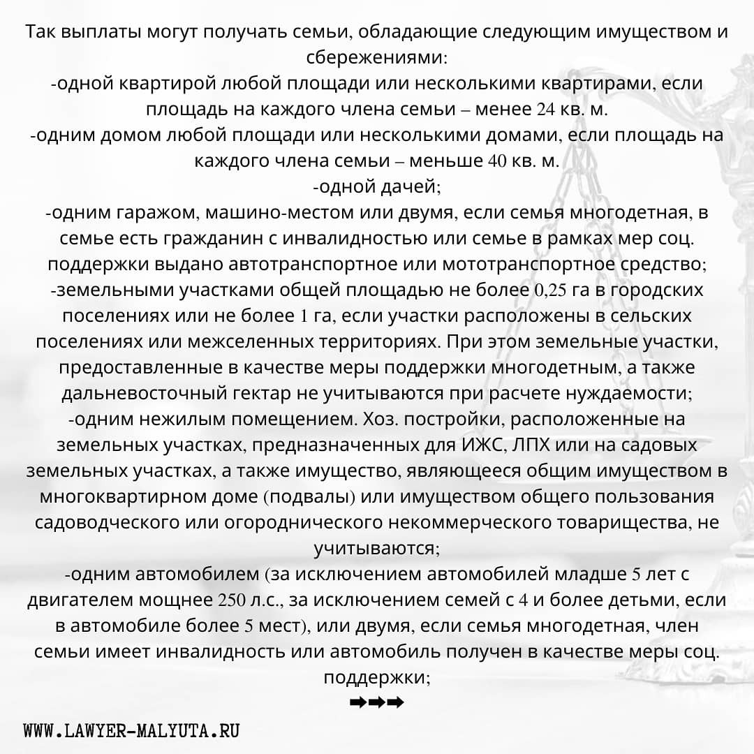 В марте 2021 г. для данных выплат Минтрудом России утверждены имущественные критерии для данных выплат. Смотрим фото ниже.