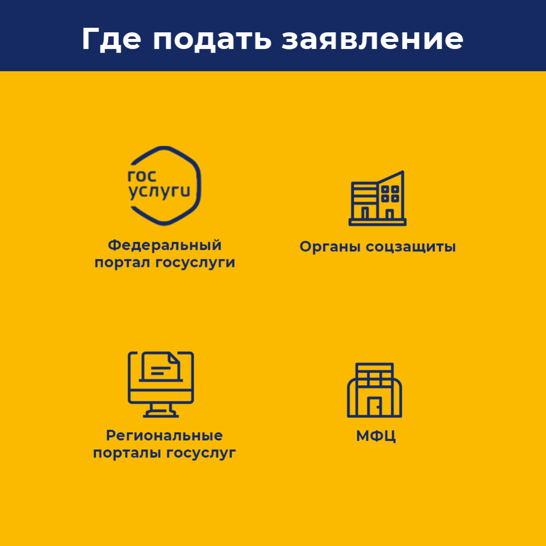 На порталеГосуслуги (федеральном или региональном портале) или лично в МФЦ или органах соцзащиты.