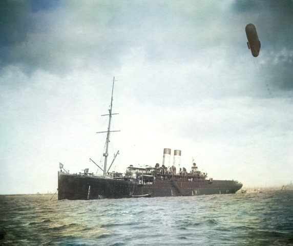 SS Lahn, переоборудованный в воздухоплавательный крейсер, под германским коммерческим флагом