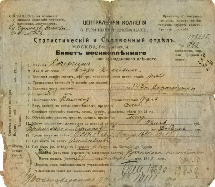 Вот в Брянске в 1914 году – 25 тысяч жителей, из них 5000 – та самая 2 бригада, ушедшая на войну и не вернувшаяся. 20 % населения города погибло или попало в плен.