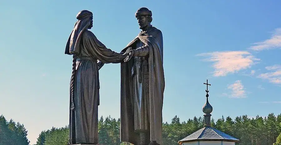 История святых Петра и Февронии очень красивая и древняя. Петр был князем и длительное время болел проказой. Однажды ночью он увидел сон, в котором некая крестьянка по имени Феврония излечила его. Он повсюду искал её и после какого-то времени нашел ее в Рязанских землях. Ей удалось излечить князя и он взял ее в жены.