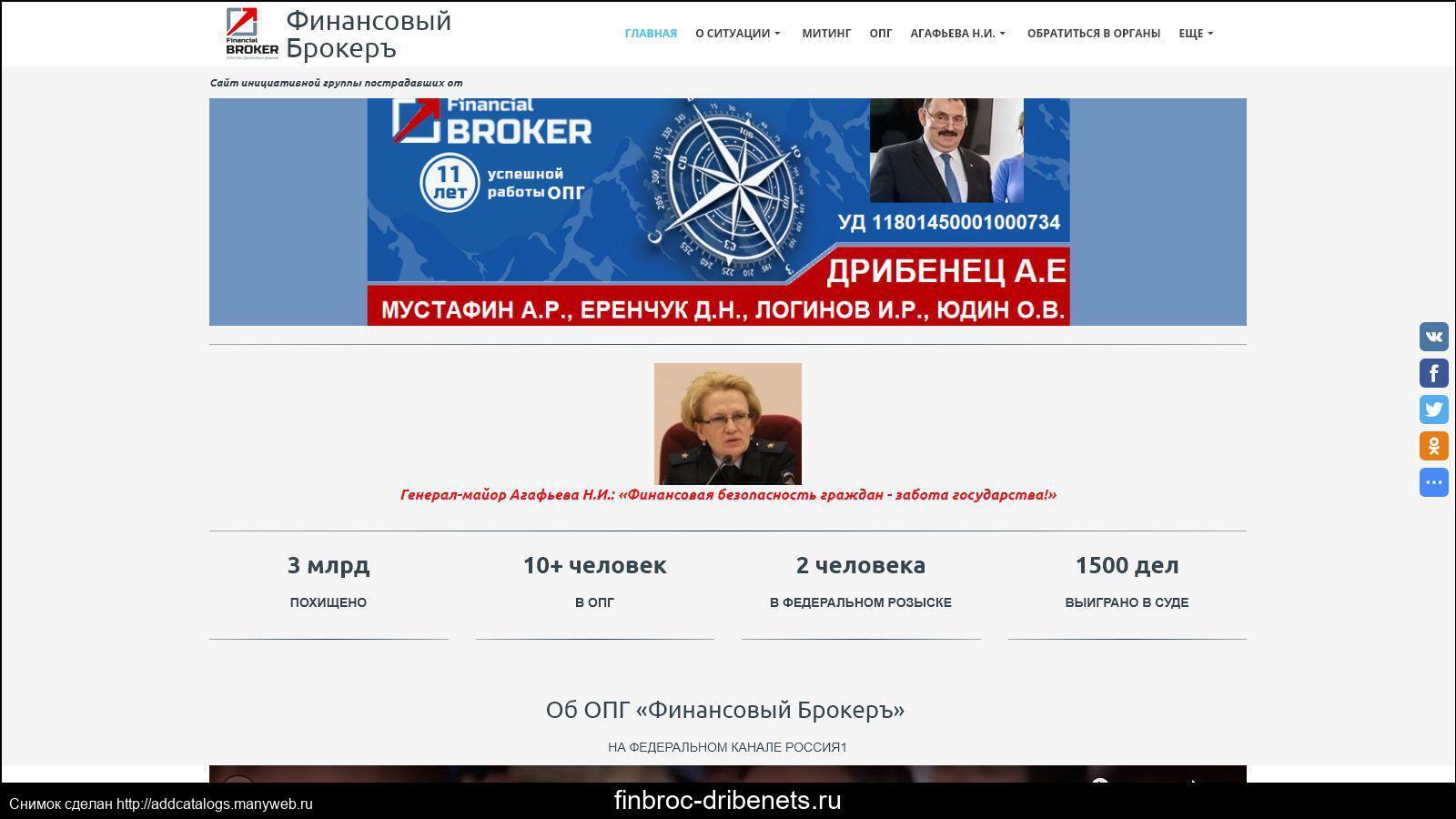 Александр Егорович Дрибенец – основной бенефициар ООО “Финансовый БрокерЪ” и еще более 30 компаний, преступник и мошенник. Он еще в 2007 - 2008 годах имел проблемы с законом и был осужден по той же 159-й статье, ч.3-мошенничество.