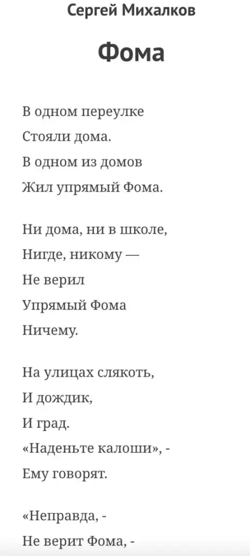 В такой ситуации проникаешься уважением к мудрости поэта Сергея Михалкова, написавшему о Фоме: