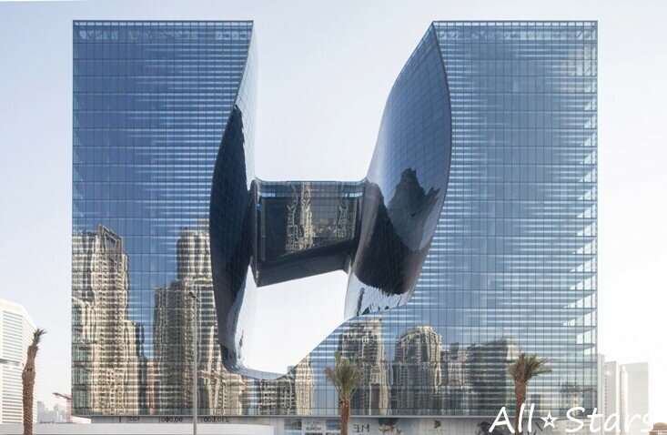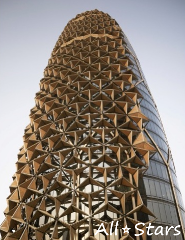 Это футуристическое здание можно увидеть на пляже Аль-Раха, оно имеет высоту 110 метров и 23 этажа. Стеклянная облицовка небоскреба состоит из треугольных элементов.