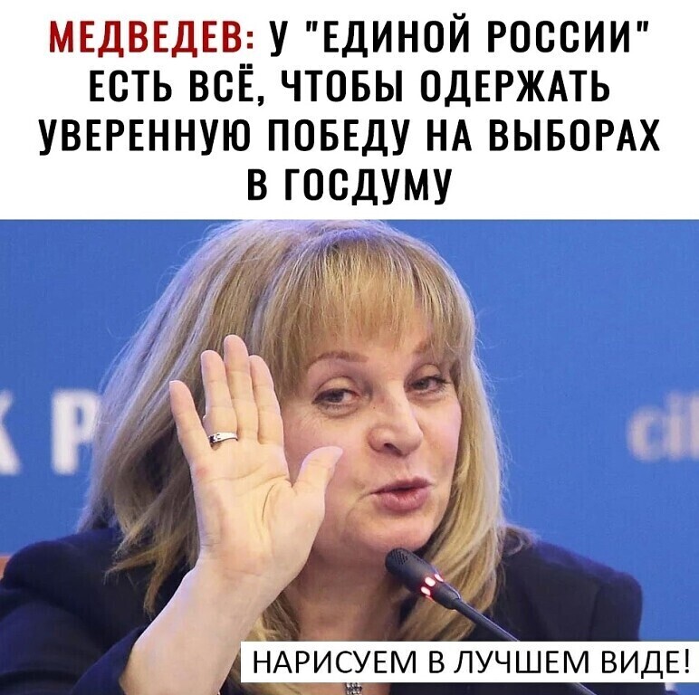Голосуй -- не голосуй, Эллочка все равно напишет Единой России не менее 50% плюс 1 голос, чтобы продолжать единолично, без других фракций, принимать антинародные законы.