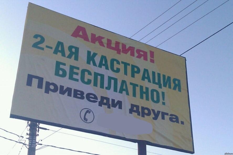 Реклама у нас повсюду. Даже на мусорных бачках можно встретить животрепещущие объявления, типа представленных в данной подборке. Просматривая свои записи для публикации, я поразился странной тенденции – большинство чокнутых маркетологов которым креативчик не дает покоя и колет как шило в известном месте, так вот, эти творцы рекламных проспектов решили, что все читающие их шедевр – озабоченные.