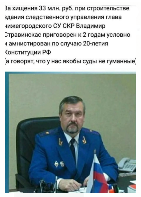 Хорошая подборка..Могу добавить, Пронит смотался, а его выкормыши продолжают творить "правовой беспредел" в Курске. Например следователь Евсюков ( странно похожая фамилия ...стрелка в московском ТЦ) более 5,5 лет затягивает возбужденное у.д.( я потерпевший) при этом более 4-х лет не вызывает ни потерпевших, ни свидетелей.....А на заявления в МВД РФ, за Колокольцева 5 л штампует отписки курский нач. СУ
