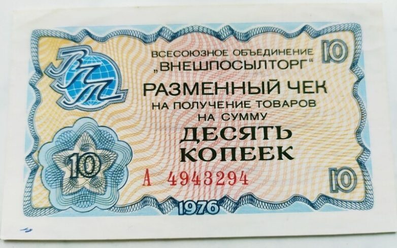 В ходу были купюры достоинством в 100, 50, 20, 10 чеков, а также крошечные бумажки по 50 и 25 копеек. Чеки нужно было предъявлять на входе, без них в «Березку» категорически не пускали.