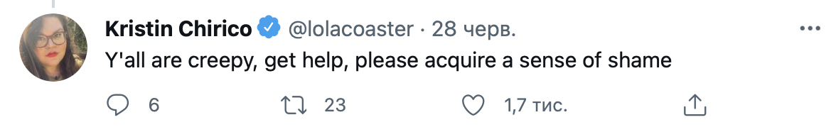 «Вы все жуткие, обратитесь за помощью, пожалуйста, научитесь чувствовать стыд», — согласилась с ним другая пользовательница Twitter.