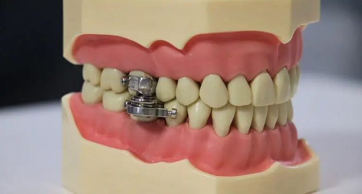 Аппарат под названием DentalSlim Diet Control устанавливается на верхние и нижние задние зубы при помощи специальных болтов для фиксации. Болты соединяются друг с другом двумя сильными магнитами, которые не дают человеку, находящемуся на диете, жевать твердую пищу.
