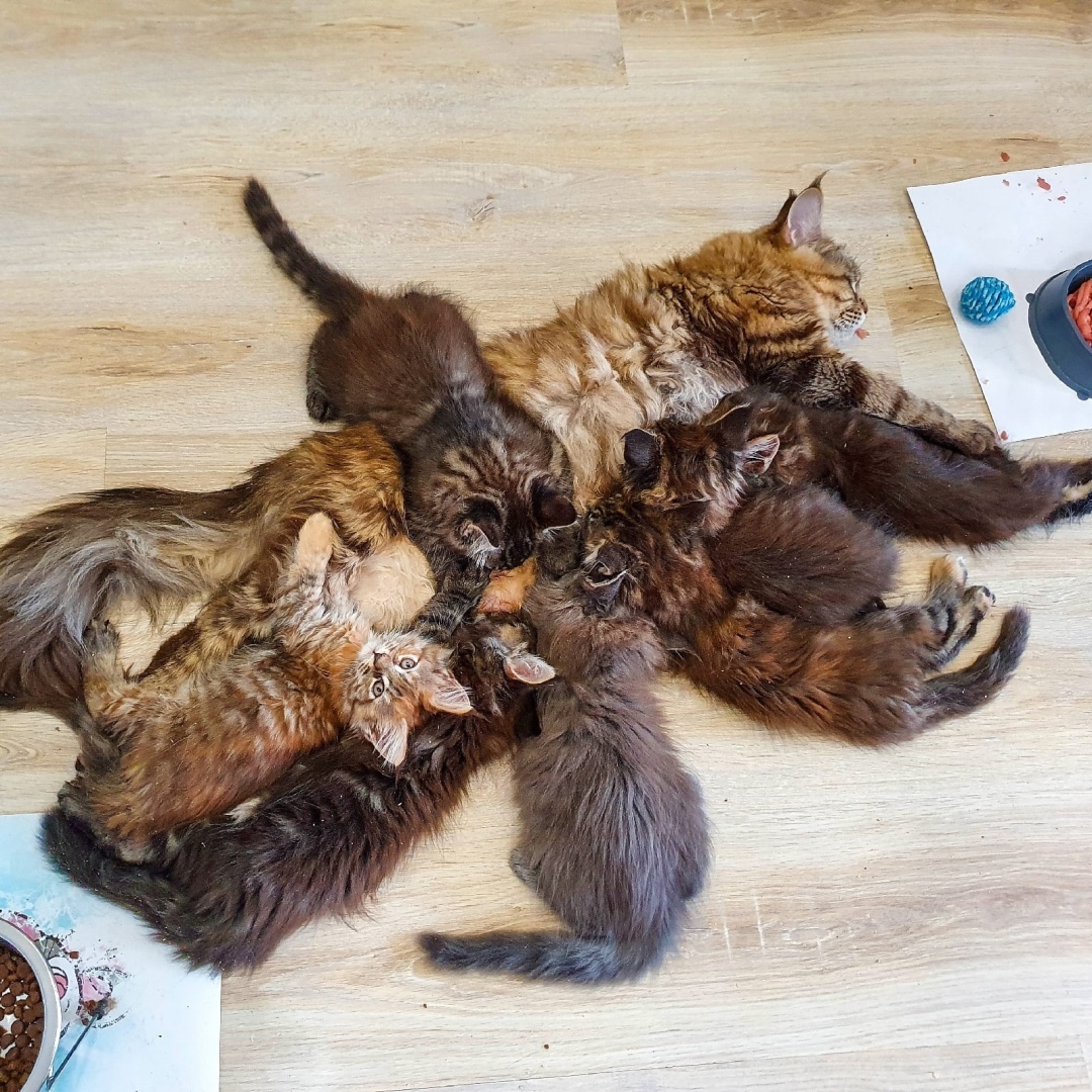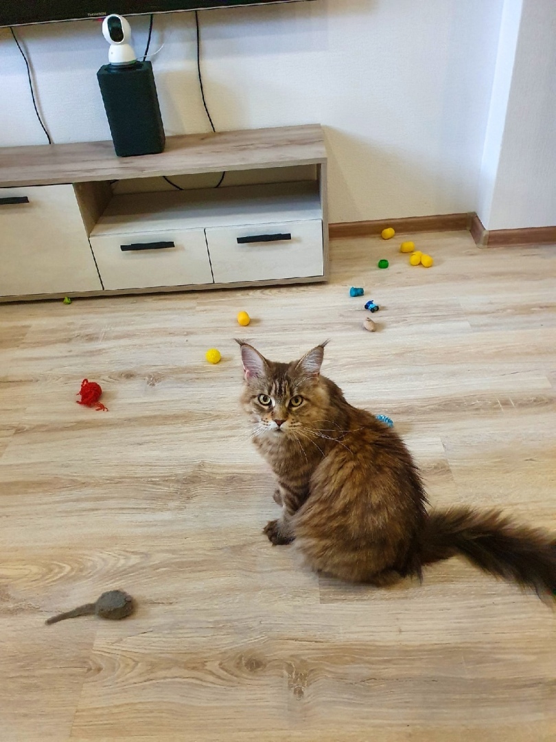 Мейн-куны – это очень позитивные, коммуникабельные ребята, компаньоны в любых делах. А еще это мешки корма и наполнителя на лоджии, пучки шерсти, разбросанные по квартире, и пол, усыпанный игрушками.