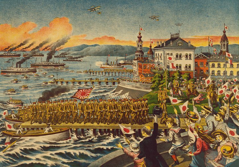 Жители Владивостока приветствуют японские войска, занимающие город. Японский агитационный плакат