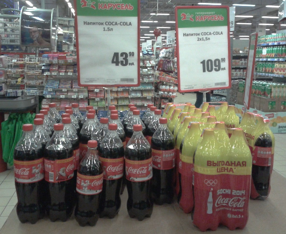Для любителей акций: налетай! Вот только непонятно, что к чему прилагается? Купи колу, колбаса в подарок или наоборот?