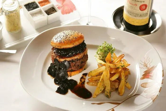 Стоимость одного бургера составляет $5 000. Он подаётся с порцией картофеля фри и обычным гамбургером (для спутника), но что более приятно – с бутылкой коллекционного вина Chateau Petrus 1995-го года за $2 500.