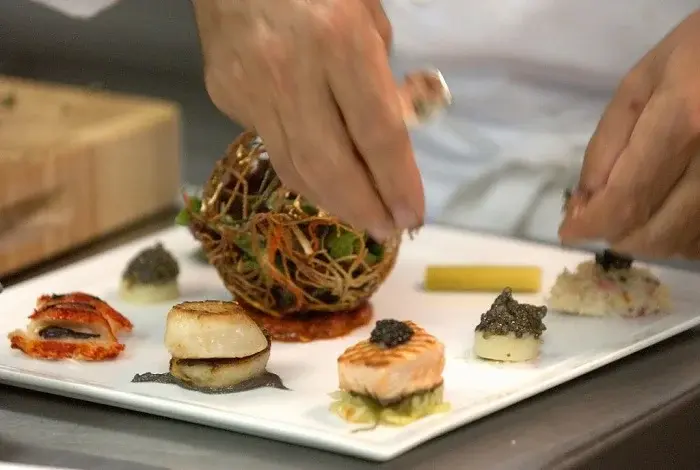Украшается блюдо золотой фольгой. Стоимость одной порции достигает $1 000.