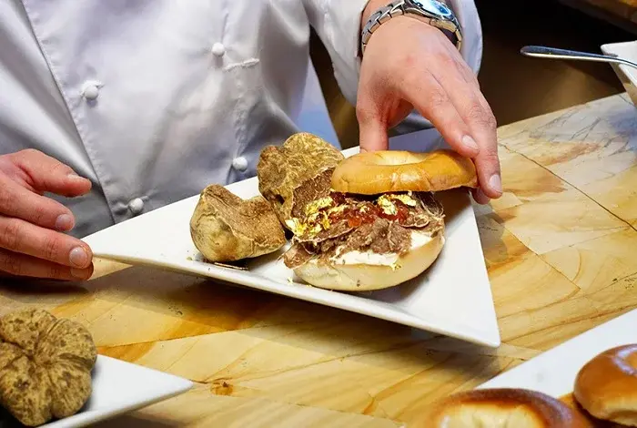 В ресторане Fleur-de-lis, расположенном в Лас-Вегасе, посетителям предлагают заказать самый дорогой бургер. Его главной изюминкой является не большой размер или золотое покрытие, а вкуснейшая начинка между хрустящими и пышными булочками. Она состоит из таких элитных продуктов: