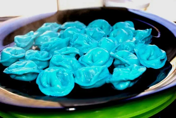 - желёз светящегося анчоуса или рыбы-факела (секретный ингредиент, который и придаёт блюду сине-зелёный цвет и невероятных вкус).