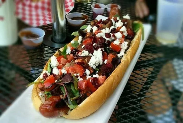 Начинает подборку блюд с впечатляющими ценниками хот-дог Кэпитол Доуг, который продаётся в Калифорнии. Основа фаст-фуда – булочка родом из Сакраменто. Она служит в качестве подушки для таких продуктов: