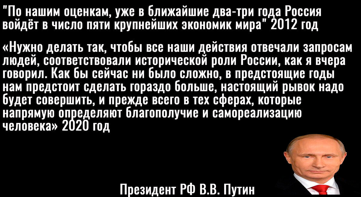 Господин Медведев обещал, что Россия войдет в пятерку ведущих стран мира.