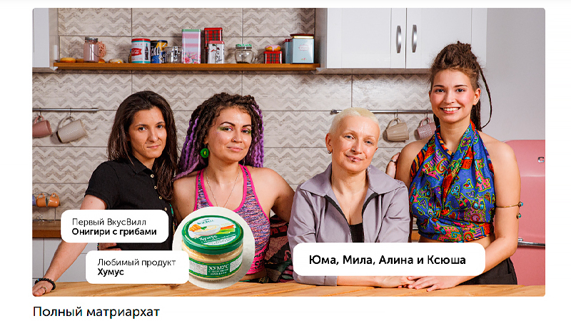 «ВкусВилл» рекламирует себя, демонстрируя семьи своих покупателей. Нормальных среди них нет, только меньшинства. В чём смысл? В том, чтобы доказать нам: это и есть новая нормальность, это модно, бросайте свои устаревшие традиции, присоединяйтесь.
