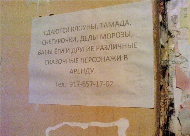 Иногда попадётся такое, что просто обхохочешься! И в цирк ходить не надо. Предлагаем вам подборку смешных объявлений и надписей. Надеемся, что они вам понравятся и поднимут настроение. И вам захочется ещё...