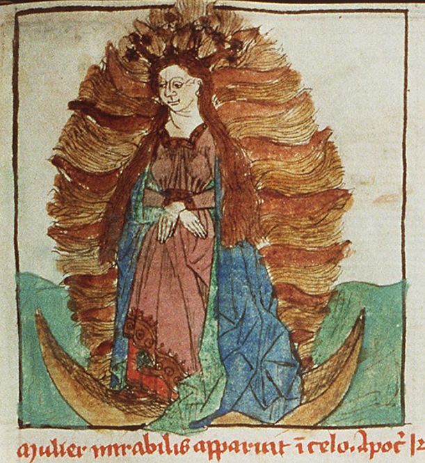 Жена, облечённая в солнце (Speculum humanae salvationis, 1450 год)