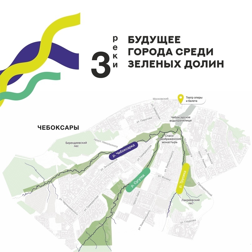Пожалуй, для меня территории малых рек интересны тем, что они пронизывают весь город, от окраин до центра. Они соединяются в одну точку вокруг узлового общественного пространства Чебоксар — Чебоксарского залива, который затем переходит в важные общественные пространства, такие как Московская набережная и Красная площадь. Реки Чебоксарка, Сугутка, Трусиха располагаются в глубоких долинах и разбивают город на отдельные "клинья", слабо связанные между собой. При этом они образуют единую законченную систему природных пространств города Чебоксары. Именно это является интересным — территории могут быть не только линейными парками, но и маршрутом, альтернативным обычному транспорту в городе. Малые реки уже сейчас делают Чебоксары городом зеленых долин.