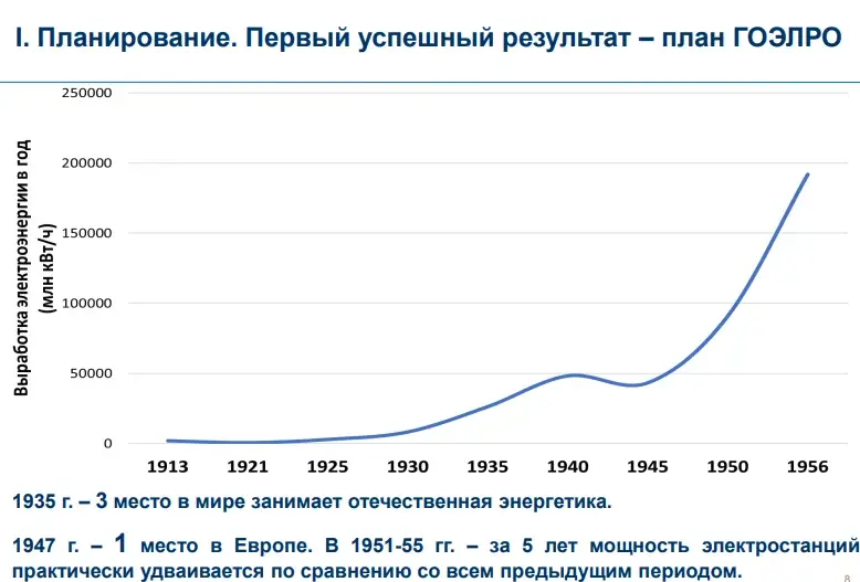 Первая. Целевое общегосударственное планирование, впервые примененное именно в Советском Союзе. Оно осуществлялось на основе лучших достижений мировой экономической науки того периода и учитывало сложившиеся хозяйственные реалии «нэповской» России конца 20-х годов. К этому времени был полностью восстановлен экономический потенциал страны, разрушенный сначала мировой, а затем гражданской войнами. Но остановиться на этом означало бы привести страну к неминуемой гибели от куда более развитой и натравливаемой западными державами и на Советскую Россию Германией. Большевистское руководство, в отличие от нынешнего российского, хорошо понимало смертельную опасность для страны многолетнего топтания на месте.