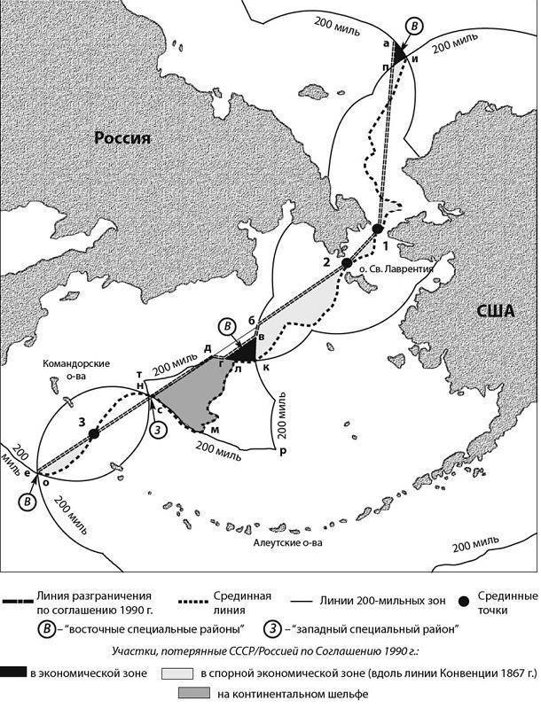 В 1990 г. министр иностранных дел СССР Эдуард Шеварднадзе при активном содействии Михаила Горбачёва отдал американцам около 80 тысяч квадратных километров (как минимум 34 тысячи квадратных морских миль) советской (теперь российской) территории